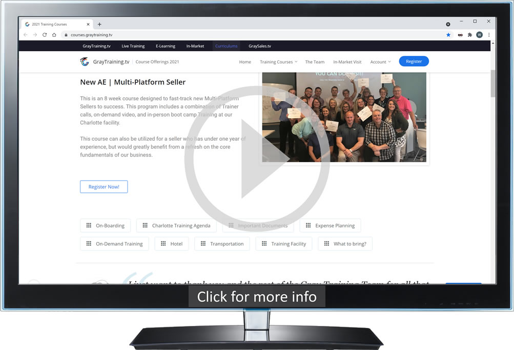 The purpose of this website is to provide you a simple overview, awareness and understanding of how the Gray Training Network of websites, and cloud-based apps, can best work for you and your sales team.
