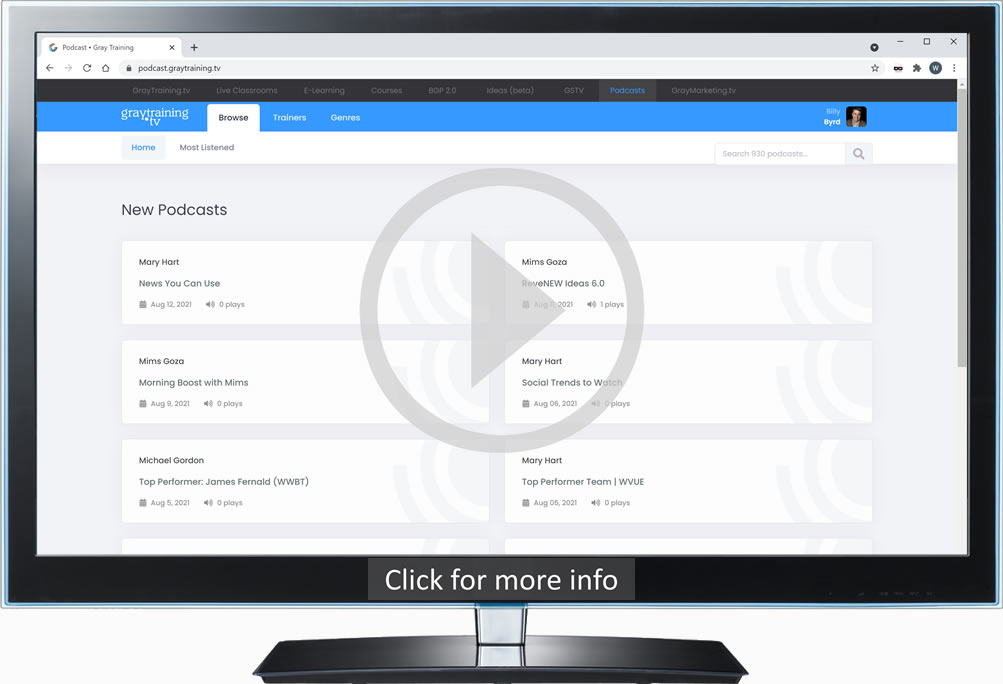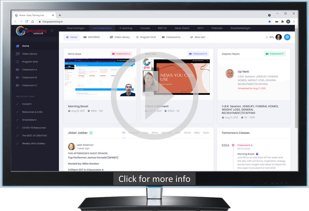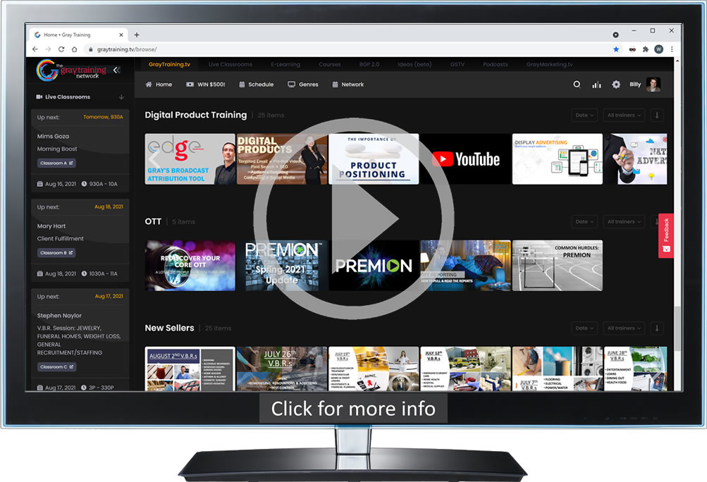 Live.GrayTraining.tv keeps you connected to thousands of Gray Sellers, and helps you stay focused on the most immediate and relevant Gray Sales Strategies & Priorities!